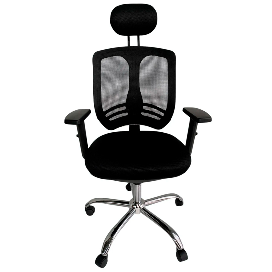 Silla Ergonómica de Oficina con Cabecera y Soporte Lumbar - Confort Premium y Base Cromada
