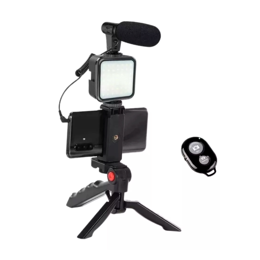 KIT DE GRABAR VIDEO ESTABILIZADOR - MICROFONO + LUZ + TRIPODE + CONTROL BLUETOOTH